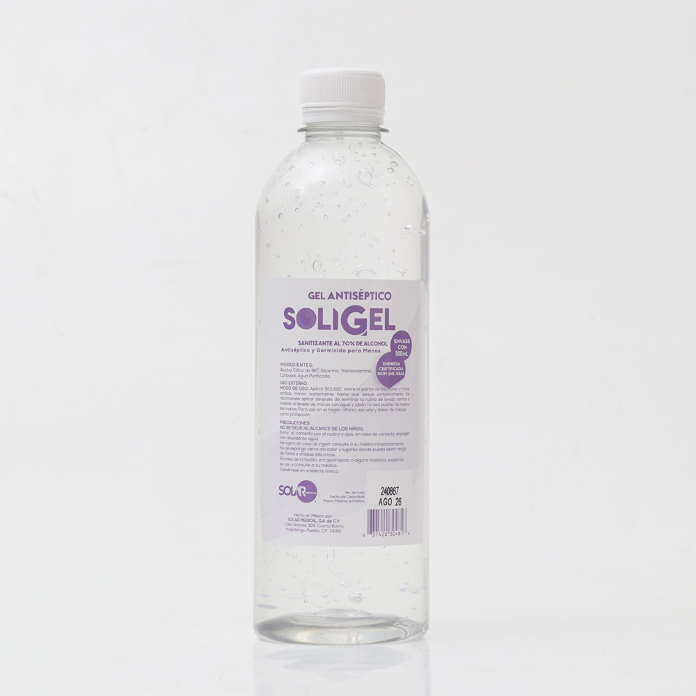DESCRIPCIÓN: ANTISEPTICOS. GEL ANTISEPTICO PARA MANOS QUE NO REQUIERE ENJUAGUE. FORMULADO A BASE DE ALCOHOL ETILICO DE 60-80% W/W; ADICIONADO CON HUMECTANTES Y EMOLIENTES; HIPOALERGENICO. ENVASE CON 500 ML.